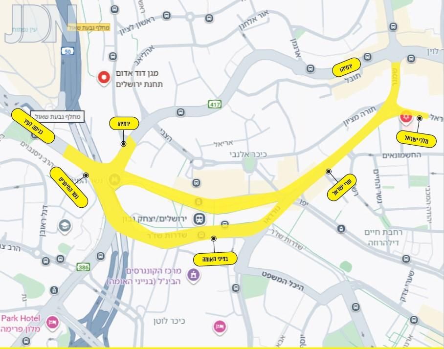 ״עצרת המיליון": בפגישה עם משטרת ירושלים הושג סיכום עקרוני על קיום העצרת ביום חמישי הקרוב בשעה 15:00 מתחת לגשר המיתרים, על ציר הכניסה לירושלים. נפגש שם… המסלול של העצרת יחל מגשר המיתרים לכיוון הכניסה לעיר עד תחנת הדלק ומשם לאורך רחוב ירמיהו עד רחוב הצבי, בצידו השני של הגשר לאורך שדרות שז"ר וכן לאורך רחוב יפו עד למפגש עם רחוב שרי ישראל, ומשם לאורך רחוב שרי ישראל עד רחוב ירמיהו ולבסוף לאורך רחוב מלכי ישראל עד בלילוס.