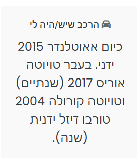 כך שאצל רבים יהיה כתוב "הרכב שיש/היה לי - בני ברק…