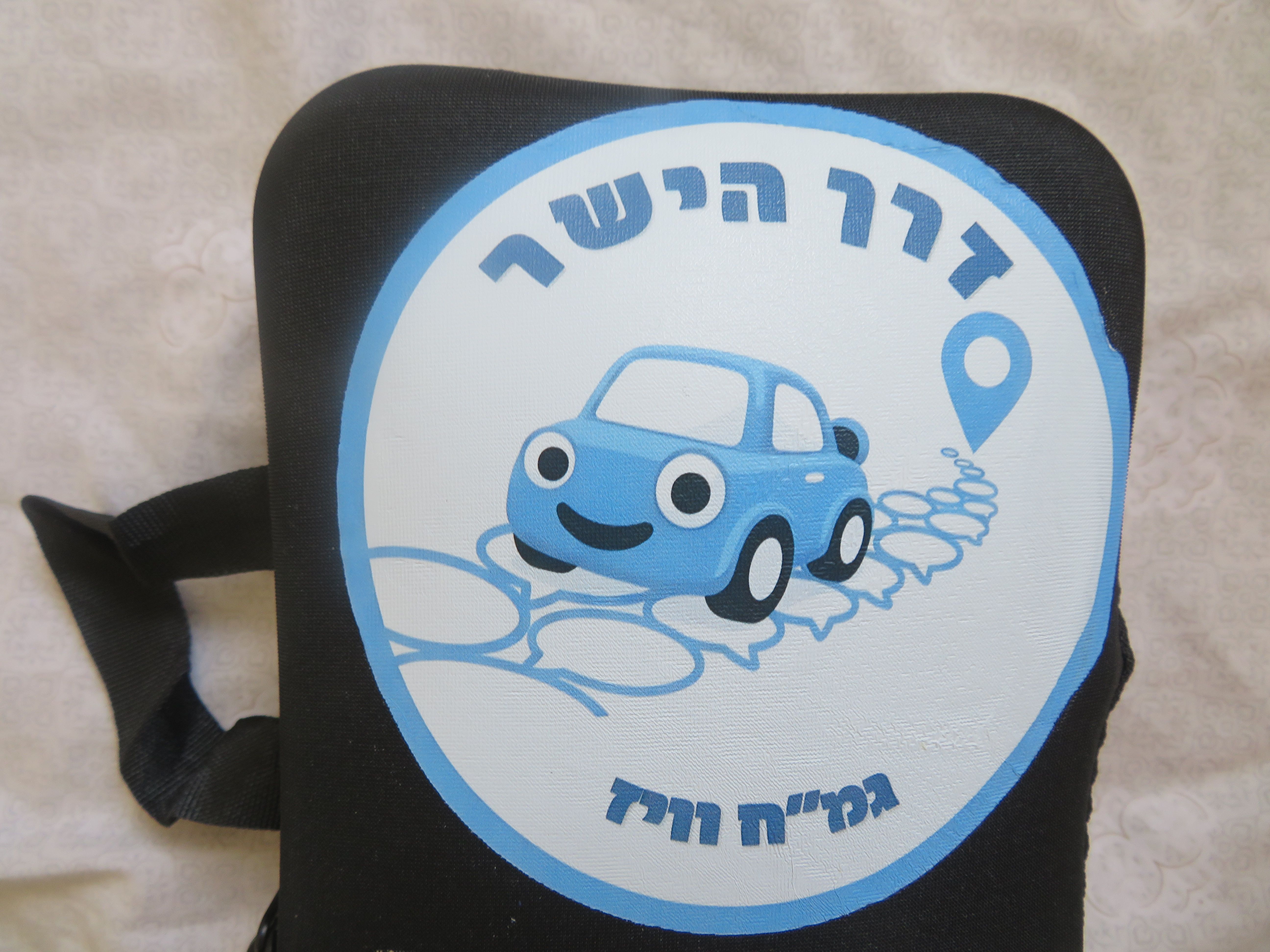 ערכתי בענק את הלוגו של וויז, יצרתי לוגו לגמ"ח בחסות ג’מיני, מהצד השני כתבתי תקנון ומס’ טלפון